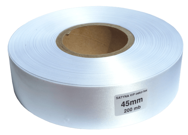 Taśma satynowa VIP (czarna i biała) – przeznaczona do druku termotransferowego, do oznaczania wyrobów tekstylnych oraz ozdób w kwiaciarniach jako szarfy. Delikatny i niegryzący materiał sprawia, że metki tego typu idealnie sprawdzają się, kiedy mają bezpośredni kontakt ze skórą. Dostępna w rolkach o szerokości: 15, 20, 25, 30, 35, 40, 45, 50, 60, 70, 80, 90, 100mm w trzech długościach: 50mb, 100mb, 200mb – satyna biała, o szerokości: 15, 20, 25, 30, 35, 40, 45, 50mm, w trzech długościach: 50mb, 100mb oraz 200mb – satyna czarna.