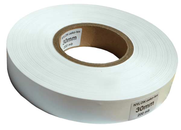 Taśma nylonowa (biała) – przeznaczona do druku termotransferowego, wyróżnia się dobrą jakością oraz niską ceną. Odporny na pranie i ścieranie. Dostępny w rolkach o szerokości: 15, 20, 25, 30, 35, 40, 45, 50, 55, 60mm w trzech długościach: 50m, 100m oraz 200m.