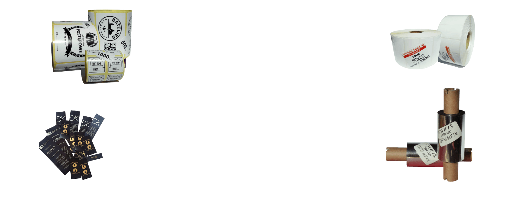 Etykiety i naklejki na roli – nadruki na etykietach charakteryzują się wysoką jakością druku (300dpi) i bardzo dobrą czytelnością, dzięki zastosowaniu wysokiej jakości kalki woskowo-żywicznej oraz przemysłowym drukarkom marki Avery Dennison. Nadruk jest wytrzymały na warunki atmosferyczne, nie blaknie na słońcu, nie rozpuszcza się w wodzie i jest znacznie bardziej odporny na ścieranie niż nadruk na etykietach wykonany kalką woskową oferowaną najczęściej u innych sprzedawców.